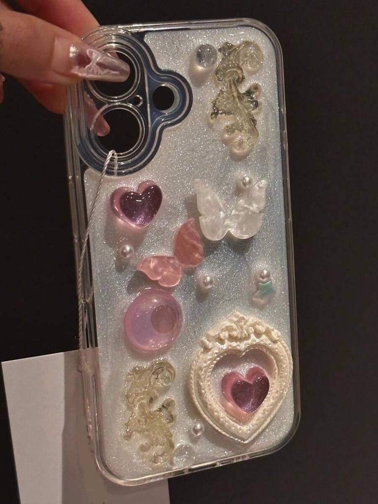 (iPhone 16 pro max) cover iphone diseño corazón de mariposa 3D de epoxy, Funda cobertor Estuche De Telefono Celular